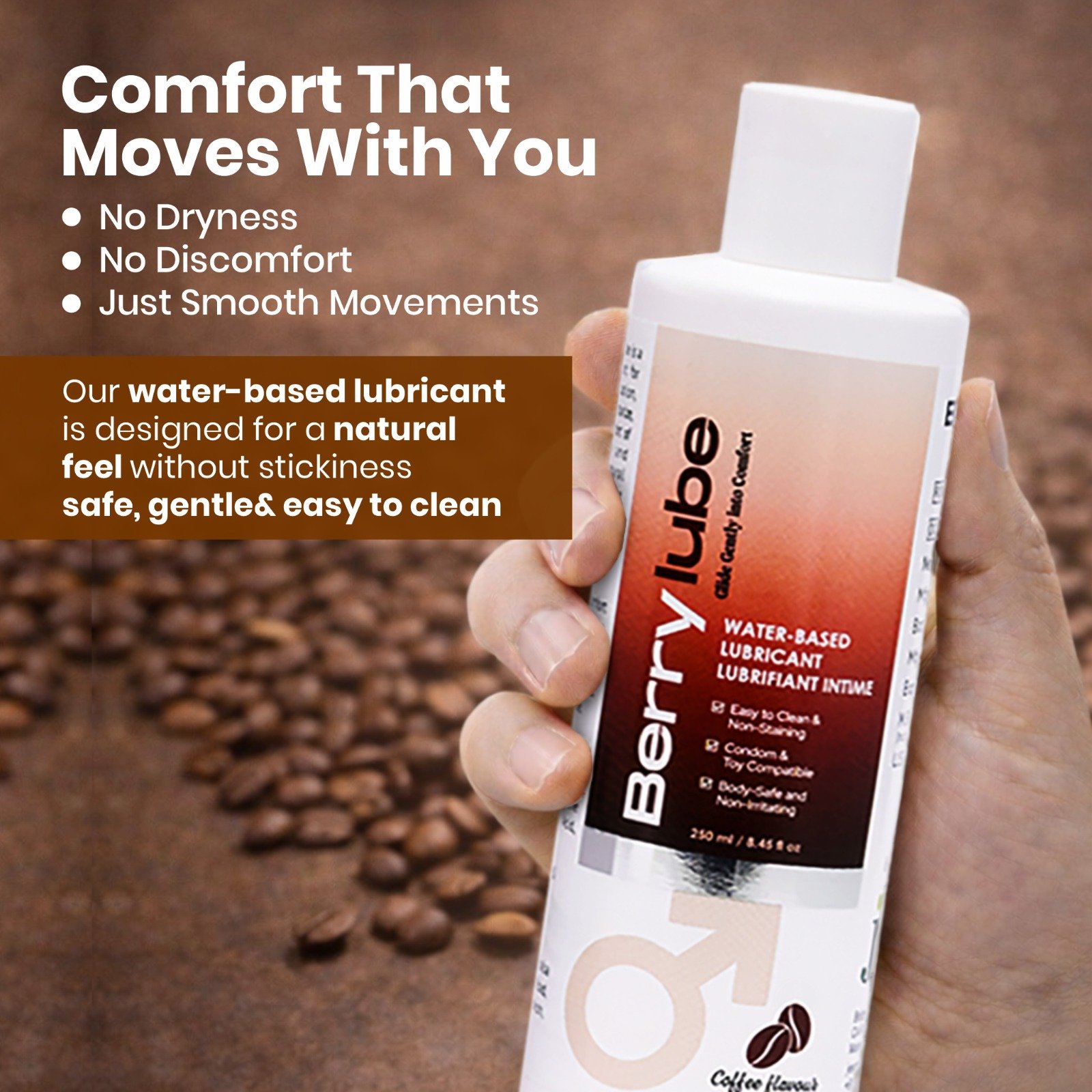 BerryLube Coffee Aroma is a water-based intimate lubricant featuring a subtle coffee aroma, offering smooth glide, enhanced comfort, and easy cleanup.