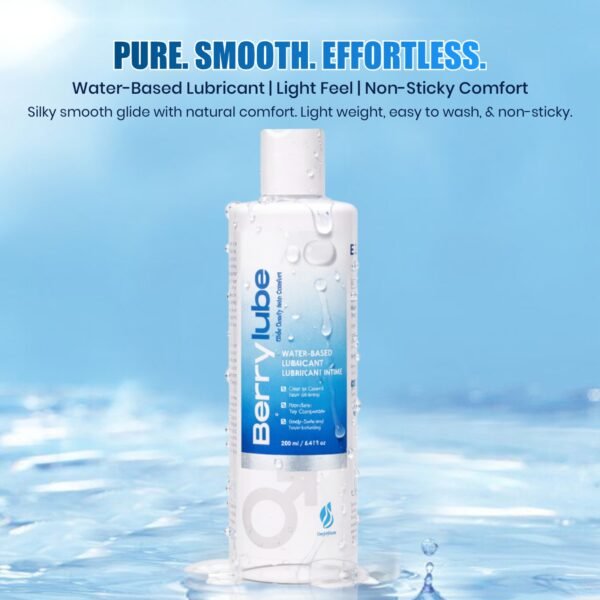 The lubricant reduces friction by adding moisture where needed. Its water-based composition ensures smooth application, easy cleanup, and compatibility with condoms.